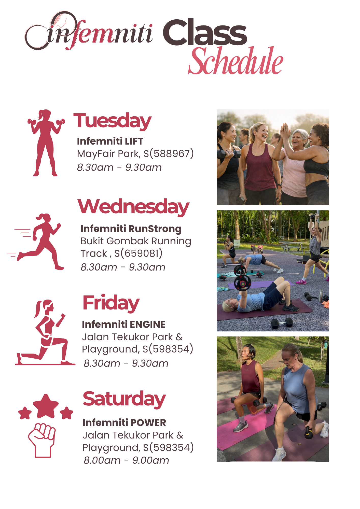 Classes take place across selected parks in Singapore.